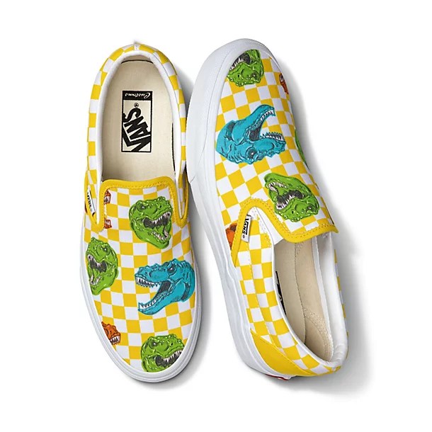 Just for “kicks”, we had to add these ultra-cool T-Rex Checkerboard Creator Shoes by Vans. T-Rex has never looked better than on these slip-on stylish shoes from Vans, you may just want to snag a pair for yourself—RAWR!
