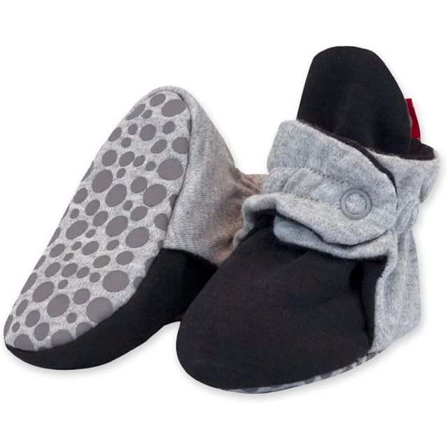 Zutano booties not only stay on little feet; they have a grippy sole that give them stability. Parents will love the hook-and-loop side closures, which make slipping the shoe on and off squirmy baby feet a breeze. Available in a ton of colors and prints.