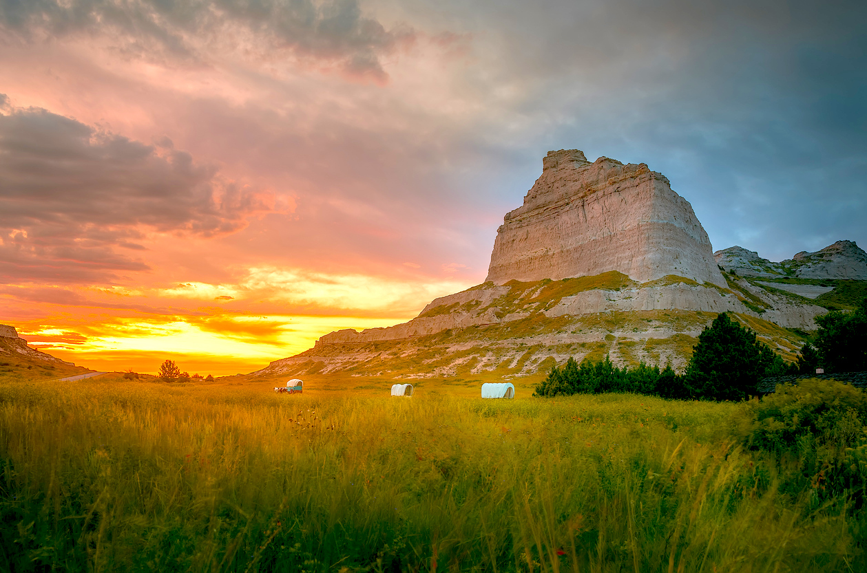 Sunset over Scottsbluff National Monument at Gering Nebraska