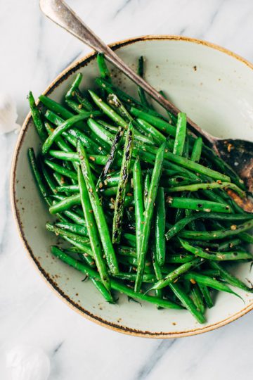 For the easiest (and kid-friendliest) side dish, you’ve got to try these green beans from Nyssa’s Kitchen. Her method leaves the beans perfectly tender with a little char on the outside. Drooling yet?