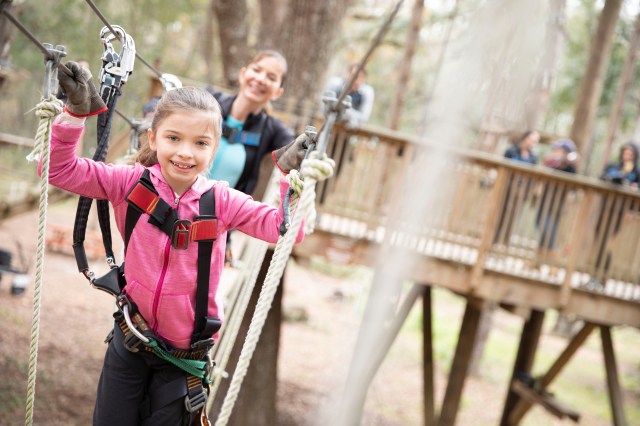 If hanging in the trees is the type of thrill your family craves, head to TreeHoppers Aerial Adventure Park. Nestled in a picturesque forest west of Dade City, the treetop adventure park features eight challenging courses that’ll allow you to climb and zip your way through its towering oak trees, narrow bridges and speedy ziplines. For youngsters who are just starting out, TreeHoppers provides climbing sessions to help them feel comfortable with tackling their first zipline.