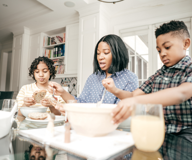 You may have heard this one before but we’re going to say it again. Get up 20 to 30 minutes before your kids need to wake, and take that time to get yourself ready. Whether that’s stretching, having coffee, spacing out, showering or just getting dressed, if you have a jumpstart on your own morning routine, you won’t be as stressed about theirs. And get your stuff ready the night before, too, if you can.