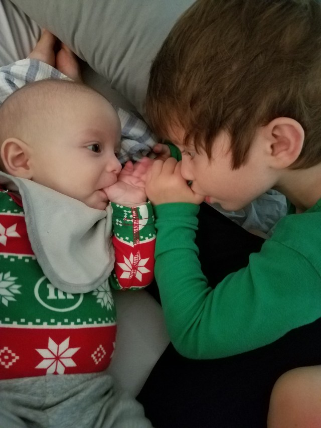 The other morning, while snuggling with both of my sons before getting up for the day, I snapped a picture of both of them, sucking their thumbs.