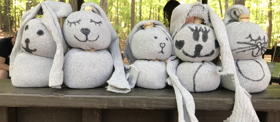 • Asking “I wonder” questions, like “I wonder what you could make in an outdoor kitchen?” or “I wonder what we could use to color this white sheet?”