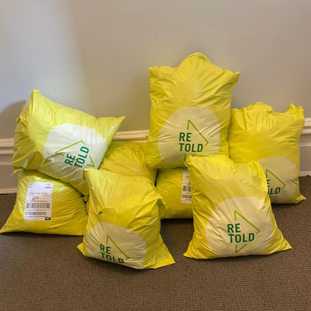 Retold’s concept is to fill each Retold bag with your unwanted textile goods, drop it off with the prepaid label, and you're done! Together with Retold’s partners, all items sent are thoroughly sorted before going to charities, thrift stores, reuse partners, up-cyclers, and soon, next generation fabric houses. All Retold bags come pre-labeled with postage prepaid and are made plastic-free from biodegradable and compostable cornstarch! Retold—Join Here!