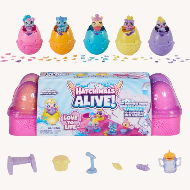 Each little chicken fits in its own egg that pops right into the coop, revealing a newly hatched feathered friend behind the coop's doors. Follow their story with the included book!
