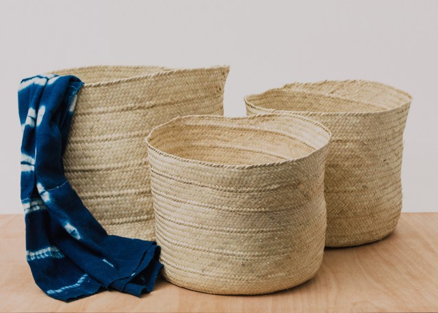 Available at: kazigoods.com, $48 for a set of 3 Palm Nesting Floor Baskets.