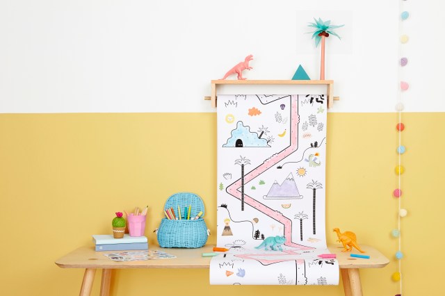 Talk about versatile—an activity and wall art literally rolled into one! Thanks to the creative minds at Olli Ella, Playpa is now ready for coloring, stickering, playing, and decorating. With 26 themes to choose from, each roll inspires creativity and can be hung from its sustainably sourced oak hardwood Pollie Shelf for instant, creative, and affordable wall décor.