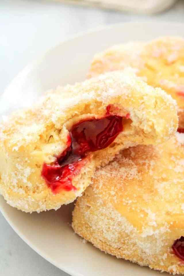You can’t go wrong with a classic jelly donut! This recipe from Everyday Family Cooking is super easy to pull off with a cake piping tip and your favorite raspberry jelly.