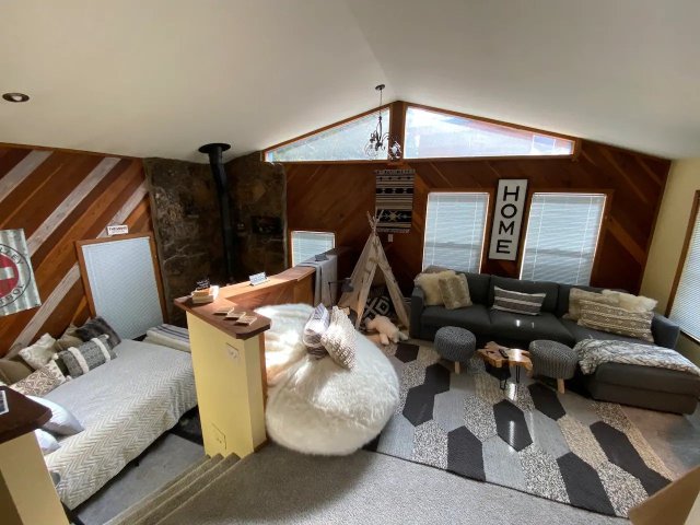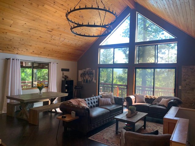 This spot would be a great option to bring your whole crew as it comfortably sleeps up to 14 people. The two-story deck will be everyone's favorite and the newly renovated kitchen has everything you need. Nearby attractions include the Stanislaus River, the quirky town of Murphys, Bear Valley ski area, and Big Trees State Park. There are tons of tubing spots nearby in the winter and the cabin has the gear you can borrow.