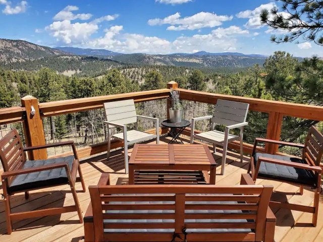 This beautiful cozy cabin is nestled on a hillside just 1 mile from the town of Crown King. Settled in the Sunny South neighborhood this house has beautiful views from every location on the wrap-around deck. Cook up some dinner on the BBQ and enjoy the picturesque property.