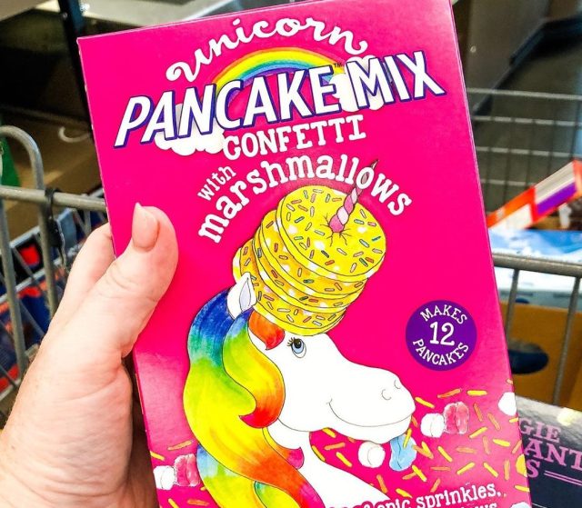 Aldi wants to make your unicorn dreams come true. Rumor has it, the grocery retailer has Unicorn Confetti Pancake Mix on its shelves—and it comes with mini marshmallows!