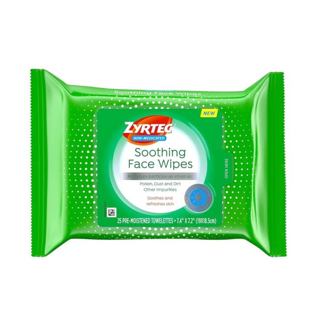If you're feeling itchy or having a mild reaction to something in your environment, the Zyrtec wipes are designed to sweep away particles, dust, and dirt to calm any irritation your skin might be experiencing.