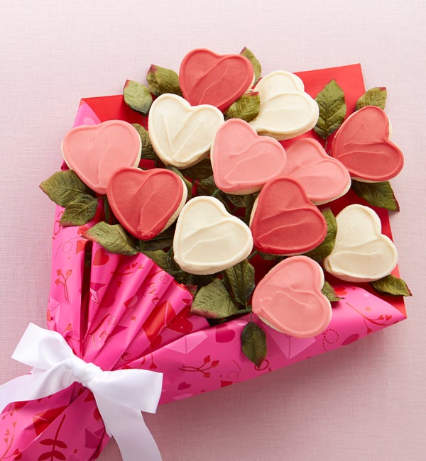 We smell sugar! This darling bouquet of Valentine's Day cookies is made up of a dozen buttercream frosted cookies that come in gorgeously gift wrapped.