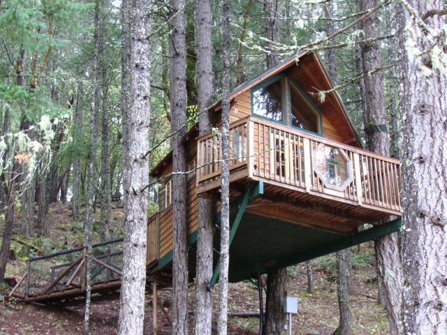 If you've ever wanted to spend your night suspended in the trees, look no further than Vertical Horizons in Southern Oregon. Here you can rent out one of four treehouse cottages and truly immerse yourself in nature. Wake up to the sound of birds and an awesome breakfast provided on site and then spend your days climbing trees, fishing or playing disc golf. Kids are welcome, and the cottages can sleep your whole crew. All of the treehouses come with a half bath—showers and BBQs are located near the main house.