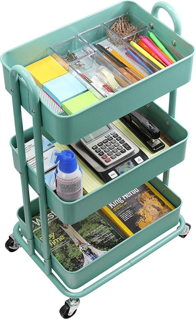 When the remote-day is done, get all that school clutter off the kitchen table/bed/floor and wheel it back into a corner, safe and sound. It also comes in red, black, and white.