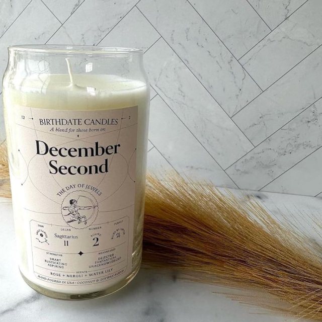 Candles created differently for each birthdate, personalized birthday information and custom scents.