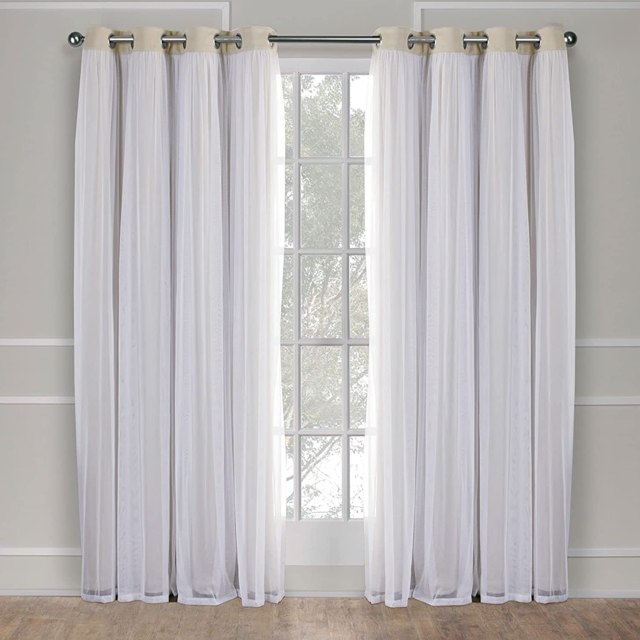 Layered Solid Room Darkening Blackout & Sheer Grommet Top Curtain Panel Pair