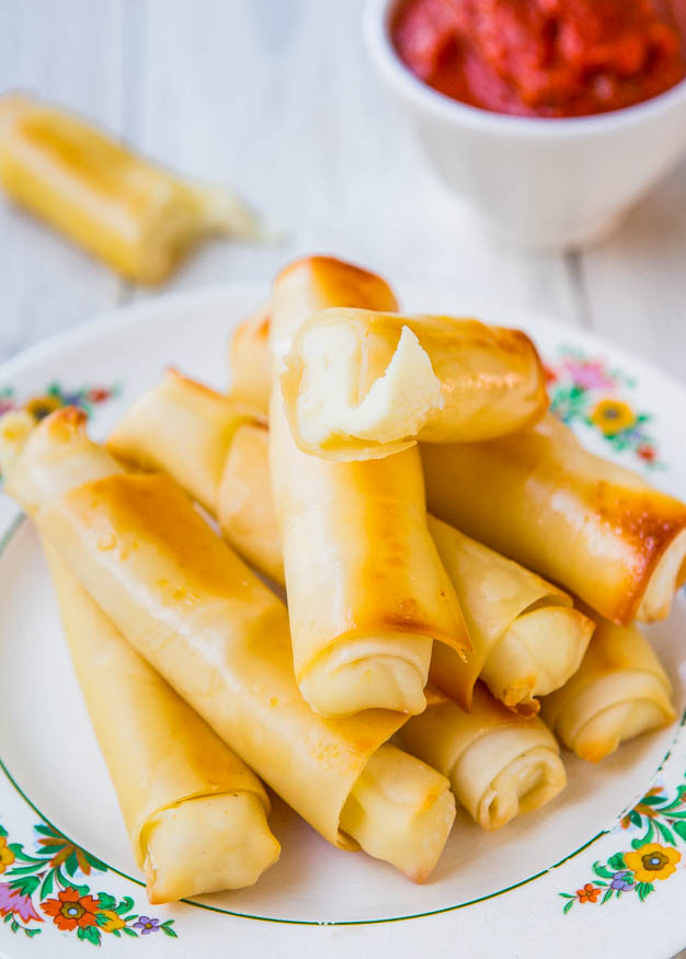 This appetizer from Averie Cooks is kid-approved and super easy to make. You get the crunchy, melty effect of mozzarella sticks without the mess and hassle of deep frying.