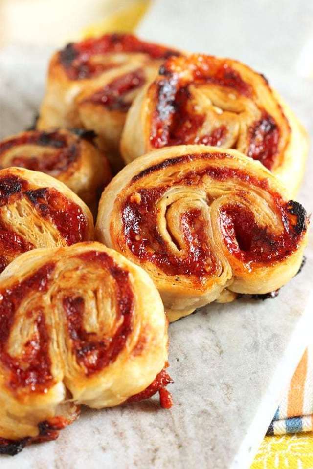 These pretty palmiers from The Suburban Soapbox will definitely impress your guests. Buttery puff pastry and tart tomatoes meld perfectly with rich cheddar cheese—delish!