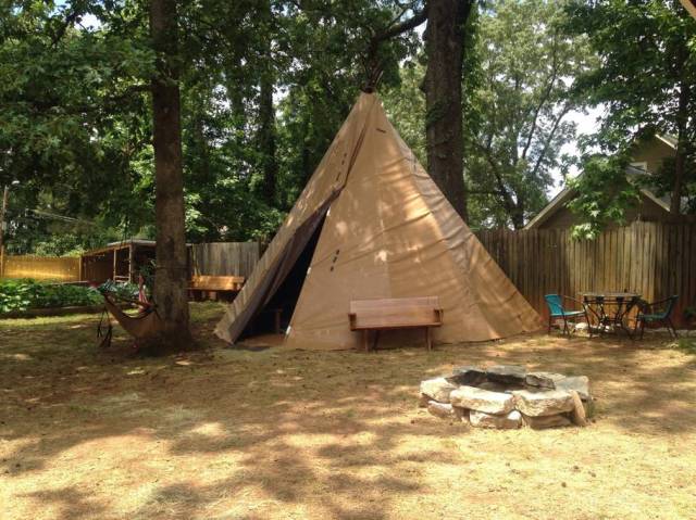 The Teepee is tucked in the corner of a unique property in East Atlanta that is shared with another Tepee, a Sovereign Airsteam, a Caravel Airstream, and a Dalton Camper—all rented out to other guests. It's high on the novelty list and certain to delight any adventure-loving littles, but isolated it is not. Families can use the fenced in backyard, complete with a garden, hammocks, hot tub, treehouse and zipline, and fire pit, and the owners live on-site with their two younger kids.
