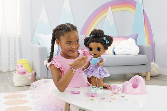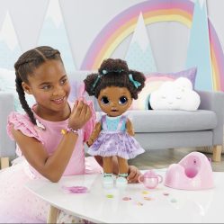 A doll that is fun for your kiddo and makes potty training easier? We’re in! Baby born Surprise Magic Potty Surprise comes with more than 30 magical surprises. When your little one feeds her real doll food or gives her water from her sippy cup, they can help their doll sit on the potty and discover the doll peed colorful, sparkly glitter pee. If they add a Potty Pod to the potty, after giving the doll water and sitting her on the potty, they’ll discover the doll has “pooped” a magical charm!