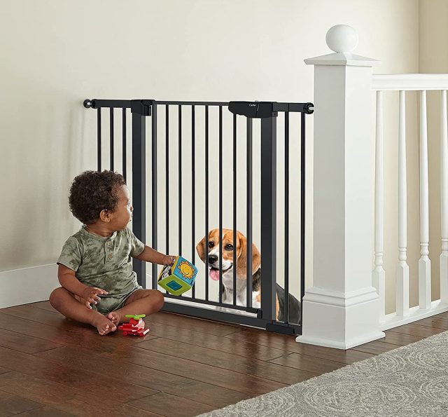 Baby gates keep little ones contained not only to where you can see them, but also within a safe space for them to explore. It’s likely you’ll want gates at the top and/or bottom of any stairs in your home. You may want one to keep your kiddos and pets separated, or to keep them away from the dog’s food and water bowls. Many parents use baby gates to prevent their babes from the bathroom or kitchen. And the good news is that baby gates don’t have to be tough to install or a major household obstacle. These are the best baby gates on Amazon that will make baby-proofing for your busy little one as easy as possible!