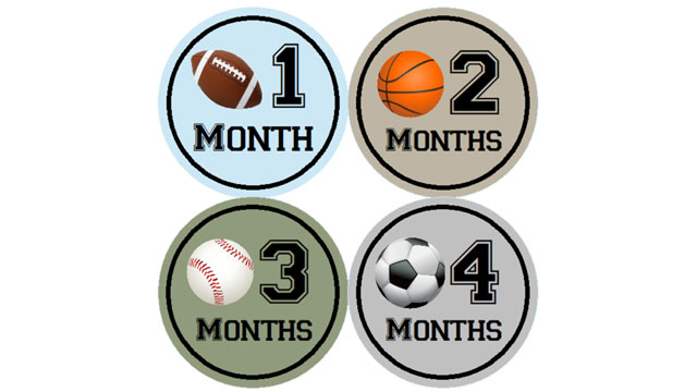 Dress your baby in a solid-colored onesie and pop on one of these sporty stickers for consistent and cute photos each month. Or, get creative with where you place the sticker, like on a baseball cap, favorite stuffie, or diaper as your baby crawls away from you. If your older baby is too busy to sit still for a photo with you, a sticker gives you lots of flexibility on where, and how, to take an awesome photo.