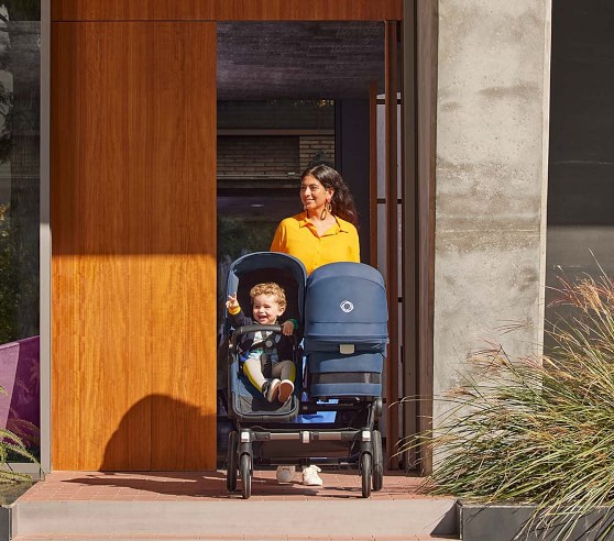 From birth to toddler, this reversible, side-by-side double stroller is a sibling (and parent!) essential. It takes just three clicks to change up the configurations–you can use it with just one child, then add another! Kiddos can sit next to each other, face each other, or both face outward at the sights ahead. This latest version features a higher seat, bassinet and side luggage basket to bring your child three centimeters closer to you for an easier reach at mealtime, playtime and hug time. And just like the Fox 3, the new advanced bassinet’s ventilation system regulates your baby's temperature and keeps them comfortable no matter where you stroll!