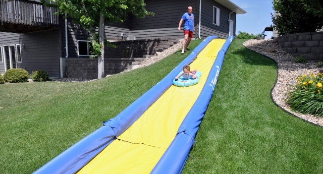 Summer is here, and that means lots of long afternoons trying to keep everyone happy and cool. Enter: the backyard waterslide. The perfect departure from the repetitive visit to the neighborhood pool, these waterslides will up your summer playtime in a big way.