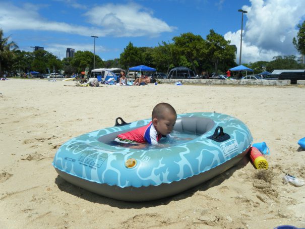All kiddies want to wade in the surf, but taking a dip in the ocean isn’t always the safest choice. Here's one idea for letting your toddlers have fun in the water; bring a small blow up raft, fill it with water, their favorite toys and presto! Baby beachcombers get to splash around as much as they want, and you get to keep a close eye on them.