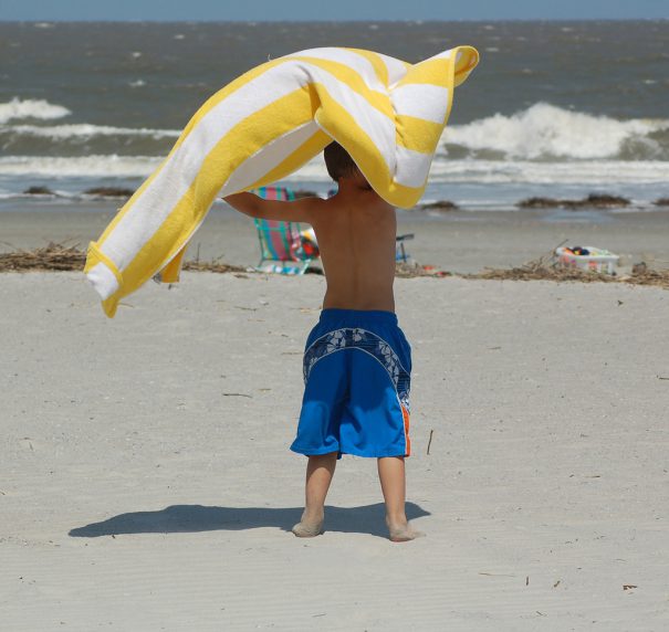 Keeping home base free of grit while at the beach can be a challenge, so if you want to create a large, clean space for your kiddos, try Team Johnson’s idea. Bring an old sheet, and using a cooler, beach bags or even an umbrella, stretch out the corners, and you’ll have a pretty sweet pad.