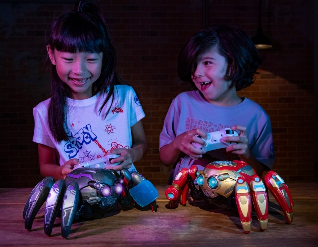 Grab your own Spider-Bot as seen in WEB SLINGERS: A Spider-Man Adventure. These buildable Spider-Bots can battle each other, have eight legs, light and sound effects, 360 degree remove functionality, and will help your little hero on the journey to saving the universe.