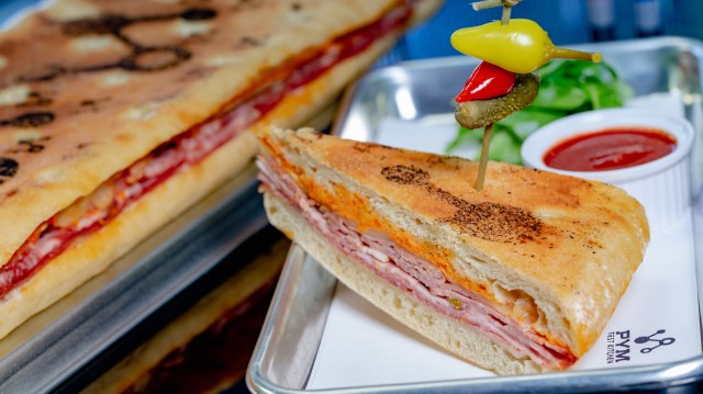 Sandwich lovers will enjoy Experiment No. EE10: PYM-ini, a panini on toasted focaccia with salami, rosemary ham, provolone, sun-dried tomato mayonnaise and arugula with marinara dipping sauce. Purchase as an individual serving or as a long, multi-portion sandwich.