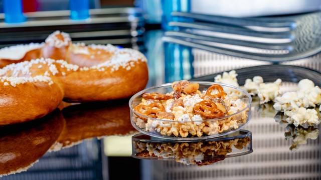 Head to the Pym Tasting Lab, adjacent to the Pym Test Kitchen to enjoy a few Snack Molecules featuring popped sorghum with mini pretzels and honey roasted peanuts.