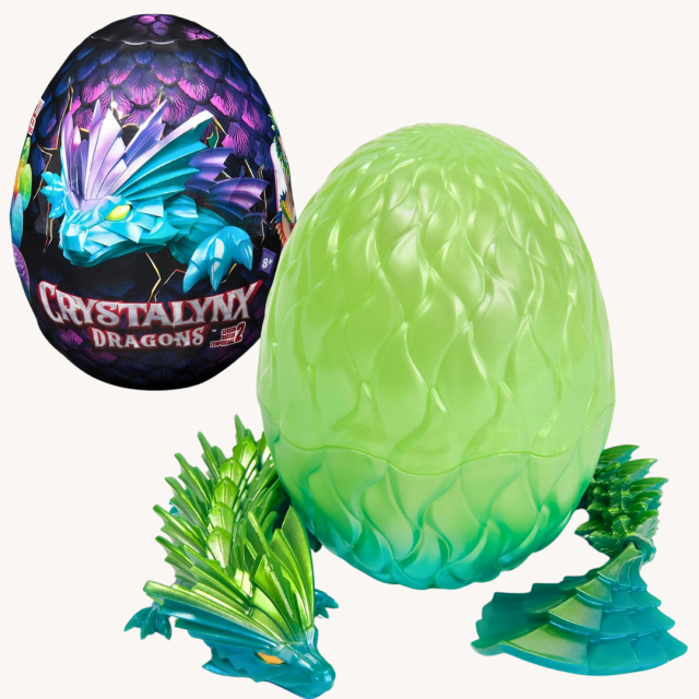 A wiggly, posable dragon straight from his matching egg that looks like it walked straight out of a fantasy novel and onto your coffee table.