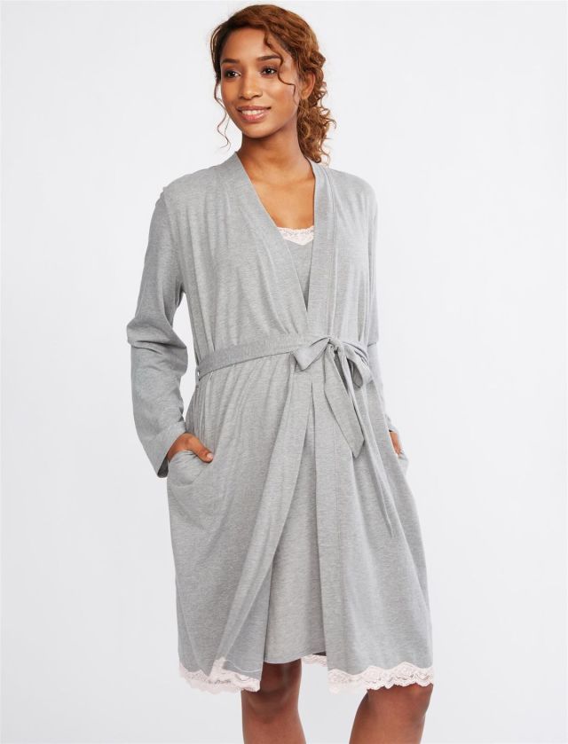 Lace Trim Nursing Nightgown and Robe