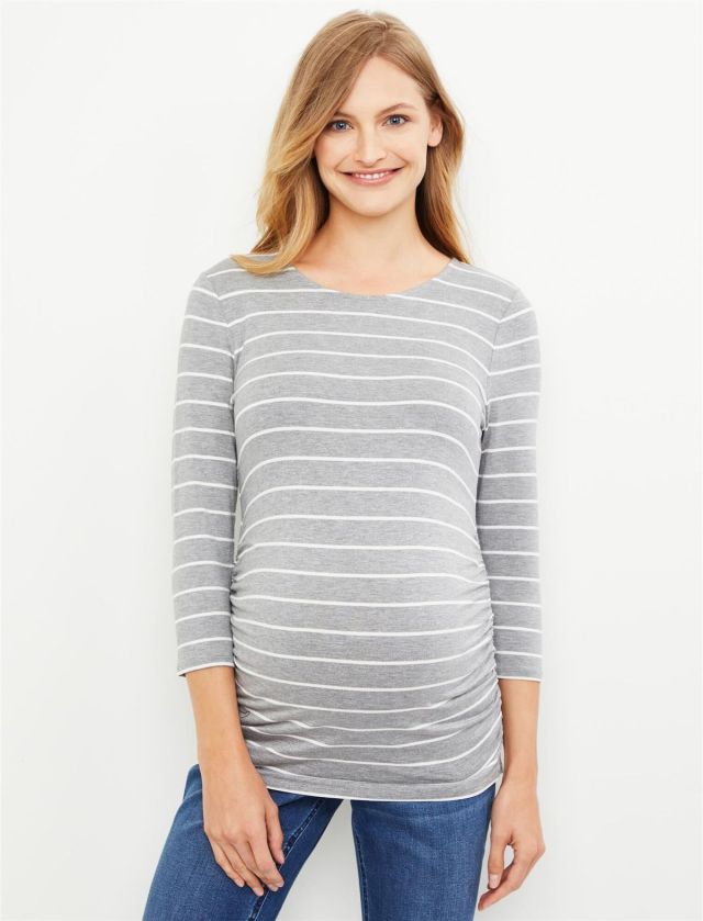 Jessica Simpson Striped Button Back Ruched Maternity Top