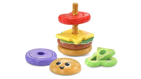 This happy stacker has everything toddlers need to make the ultimate burger, plus the middle of the pieces pop out to make a ring toss game!