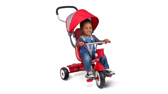 Your toddler’s first tricycle will grow with them as it has four ways to ride. Go from a stroller to a steering trike to a learn-to-ride trike, and finally, a classic tricycle they’ll love to pedal down the street. Radio Flyer