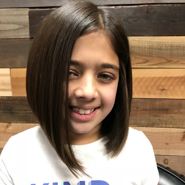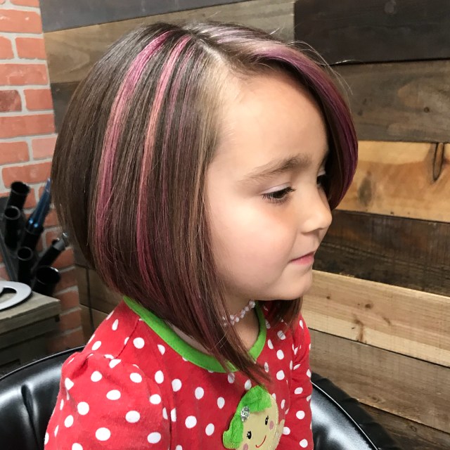 Frame her face with an A-line bob that leaves a little length so you can still rock a pony with adorable hair accessories when you need to mix it up.