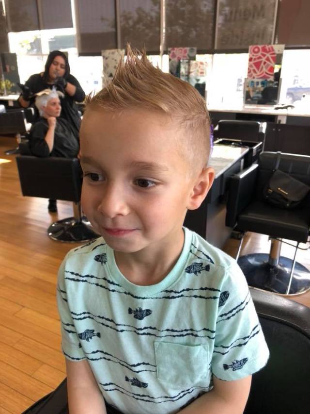With shaved sides and long hair in the middle, a mohawk is a great way to make a statement on the first day. But, be warned, you'll need to be ready to style it every day, so this style is best for product-savvy parents.