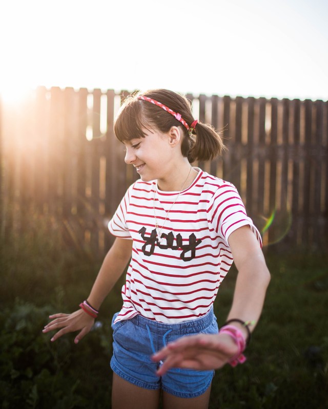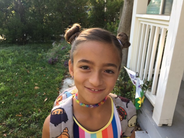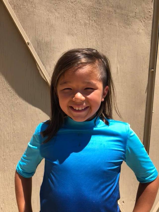 If you've got a kid who can pull off bangs, go for it! You can trim them up in between cuts, and she'll stand out in a crowd. Be sure to snag a proper pair of scissors that are designed for trimming hair.