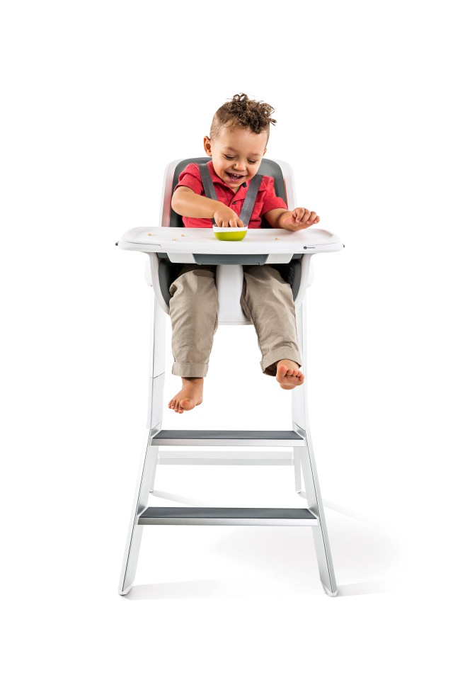 The tray on this ingenious high chair attaches with magnets so you can lift it off to clean and replace it easily. Those magnets also come in handy with 4moms magnetic bowls and platesbaby can’t knock them off! There’s also a removable foam insert, three height positions and two tray positions for your child's dining comfort.