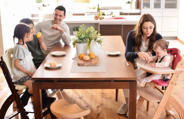 The Tripp Trapp is a perennial mom favorite for good reason: This stylish high chair holds a baby safely and adjusts easily to a child and adult chair (up to 242 pounds), and it tucks in comfortably at your dining table. The seat and footrest offer numerous heights to adjust to your growing child, and the chair frame and cushions come in a variety of colors and patterns to match any decor.