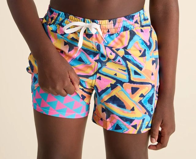 "Neon Hot Lava" sounds like the coolest color combination ever, especially on these striped swim trunks made from ultra-smooth recycled polyester. Available in kids' sizes XXS to XXL.