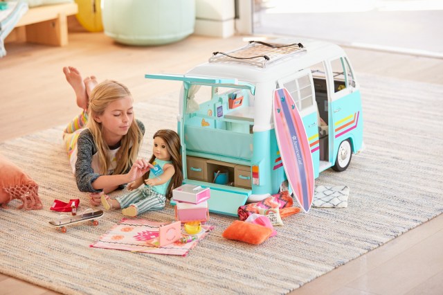 Created in collaboration with Volkswagen for 2020 Girl of the Year, Joss Kendrick, the all-new surf bus measures in at 35” W x 22” H x 21” D, has over 50 pieces and features all sorts of cool features like working windshield blades, ignition and horn sounds and a pop-out stove that's perfect for "cooking" on the beach. There's even a screen and projector for movie nights!