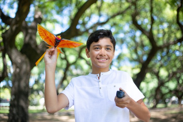 This drone-tech toy from Zing is perfect for outside fun in the spring and summer. Using drone capabilities, sensors and remote control, kids can "fly" their bird up, down, around, through hula hoops and more. Choose from orange, pink or blue.