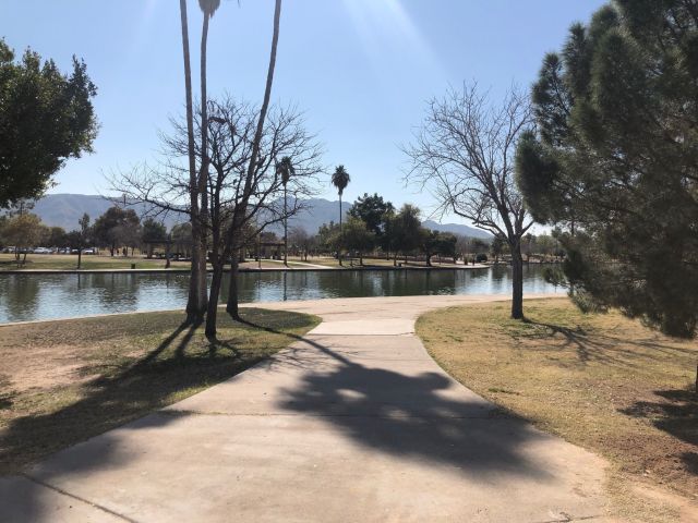 Alvord Lake Loop is a lightly trafficked loop trail located near Laveen, Arizona that features a lake and is good for all skill levels. The trail offers a number of activity options and is accessible year-round. Dogs are also able to use this trail but must be kept on leash. This is an easy cement trail around Alvord Lake. Great for kids, dogs and bird watching.