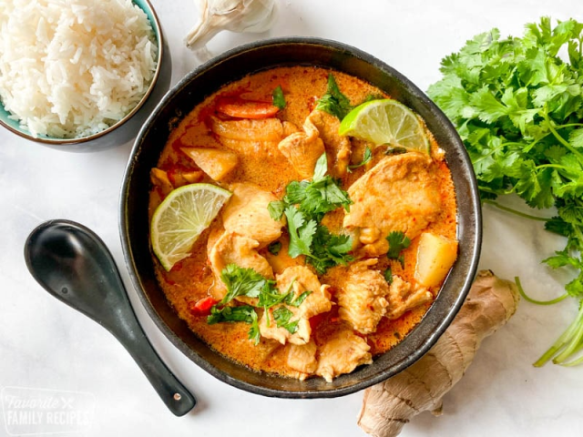 If you family is ready to dig into red curry, Chicken Massaman is the place to start. Favorite Family Recipes shares a mild yet savory recipe using massaman curry paste, chicken and veggies that kids won't be able to turn down.